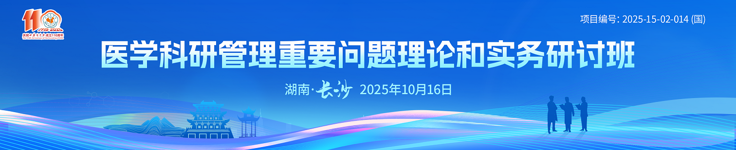 为帮助广大医学科研管理人员了解国家最新政策法规,适应国家科技体制改革形势,探索新常态下的医学科技管理创新模式,加速青年医学科研管理人员管理能力和服务水平的提升,由中华医学会医学科学研究管理学分会和中华医学会继续教育部主办的医学科研管理重要问题理论和实务研讨班[项目编号:2025-15-02-014 (国)]定于2025年10月16日在长沙举办。培训合格者可获得国家级继续医学教育学分。
